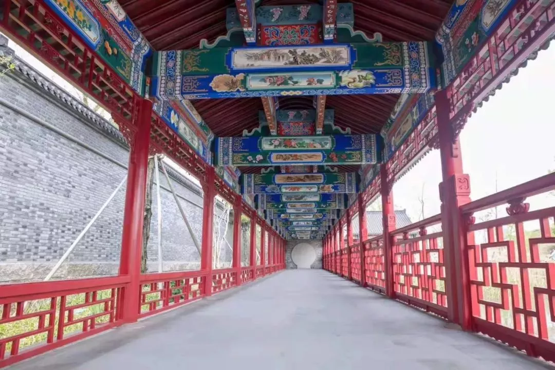 春天百花盛開,樹木吐露新芽,河水碧波蕩漾,河岸兩邊芳草萋萋,飛檐屋宇,雕梁畫壁,亭臺樓閣錯落分布。
