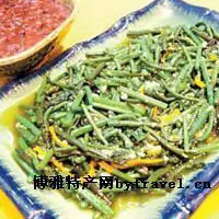 蕨菜俗稱猴腿,生長在山中低濕地帶,初春時節(jié)是最佳采集時機。熗蕨菜清淡可口,味香色濃,全天然,保健功能強,是伊春區(qū)特色小吃,深受日本及韓國客人青睞。 蕨菜又叫拳頭菜、貓爪、龍頭菜,蕨菜野生在林間、山野、松林內(nèi),是無任何污染的綠色野菜,不但富含人體需要的多種維生素,還有清腸健胃,舒筋活絡等功效。蕨菜食用前經(jīng)沸水燙后,再浸入涼水中除去異味,便可食用。經(jīng)處理的蕨菜口感清香滑潤,再拌以佐料,清涼爽口,是難得的上乘酒菜。還可以炒吃,加工成干菜,做餡、腌漬成罐頭等。