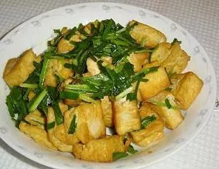 韭菜鑲豆腐炸,是信宜獨(dú)具地方特色的菜式。它的特點(diǎn)是:美味清香,既豆香味,又有韭菜味,不但人民群眾作為家庭上乘菜式,近年賓館酒家筵席上也列為獨(dú)具地方特色的菜式。這種菜式已有300多年歷史,據(jù)說,于清代初期便有韭菜鑲豆腐炸了。現(xiàn)在食用這菜式很方便,因?yàn)橛袑iT制作豆腐炸的專業(yè)戶。只要到市場上購回豆腐炸和韭菜等,在家里自己加工,即可享用到韭菜鑲豆腐炸佳肴。