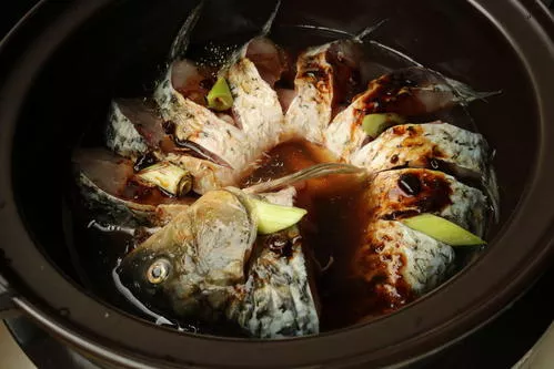 白族吃魚(yú)味在“鮮”。聞名全省的“下關(guān)砂鍋魚(yú)”,就是用洱海中捕來(lái)的弓魚(yú)或鯉魚(yú)作主要原料,配以幾十種輔料,在祥云縣特產(chǎn)的砂鍋中烹制而成的白族風(fēng)味名菜。烹制砂鍋魚(yú),講究鮮活。下關(guān)市經(jīng)營(yíng)砂鍋魚(yú)的飯店,都在店堂中設(shè)置一口石水缸,放養(yǎng)活魚(yú),由顧客挑選后再行加工制作。烹制地將活魚(yú)去鱗、剖腹、洗凈,用毛巾擦去水分,于腹壁上擦抹精鹽,腌十多分鐘,即放入盛上湯的砂鍋中烹煮,接著先后放入發(fā)好的魷魚(yú)片、海參、蹄筋、蝦米、冬菇、玉蘭片、嫩雞片、火腿片、鮮豆腐片、白菜心、紅胡蘿卜等輔料和調(diào)味品,連鍋端上桌,由于配料多樣,砂鍋保溫性能良好,鍋內(nèi)魚(yú)湯翻滾,鮮香撲鼻,引人食欲。此時(shí)趁熱食用,湯鮮肉嫩,味美可口,營(yíng)養(yǎng)豐富,色、香、味俱佳。