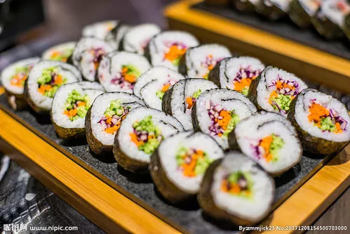 主要原料:米飯,醋,海鮮,壽司醋,芥末,醬油,壽司海苔,肉松,黃瓜,火腿腸