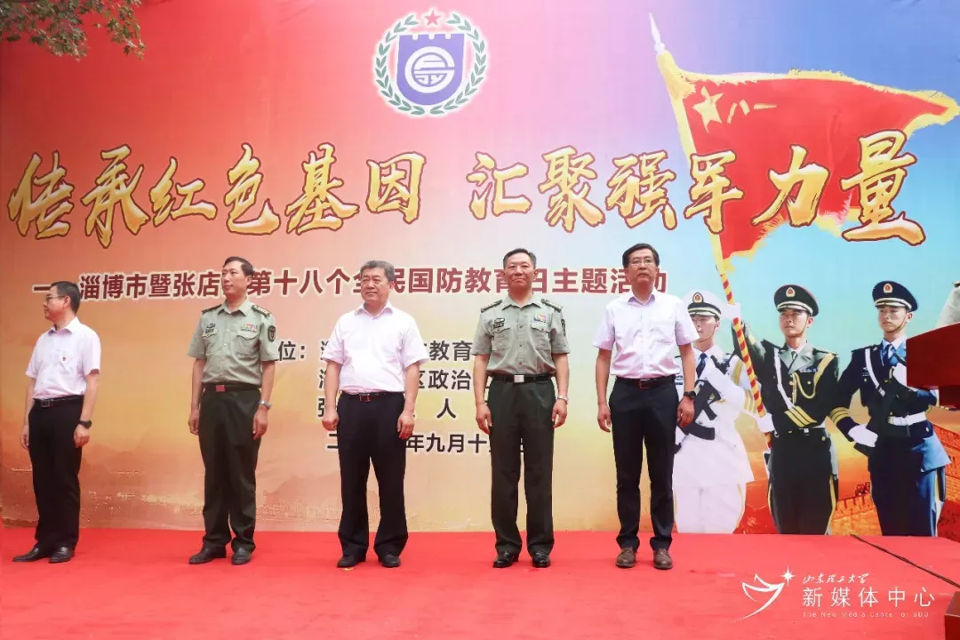 9月15日上午,淄博市第十八個全民國防教育日主題活動在我校舉行?;顒拥闹饕獌热菔桥e行山東理工大學國防教育主題園啟用暨淄博市國防教育基地命名授牌儀式。淄博市委常委、淄博軍分區(qū)司令員王培泉,淄博軍分區(qū)政委曹曉明,淄博市副市長王可杰,淄博軍分區(qū)副司令員呂光亮,我校黨委常委、副校長張祥云,張店區(qū)副區(qū)長趙晨光出席儀式,淄博市委宣傳部、市教育局、市民政局、市文化廣電新聞出版局有關負責人,淄博軍分區(qū)機關和部