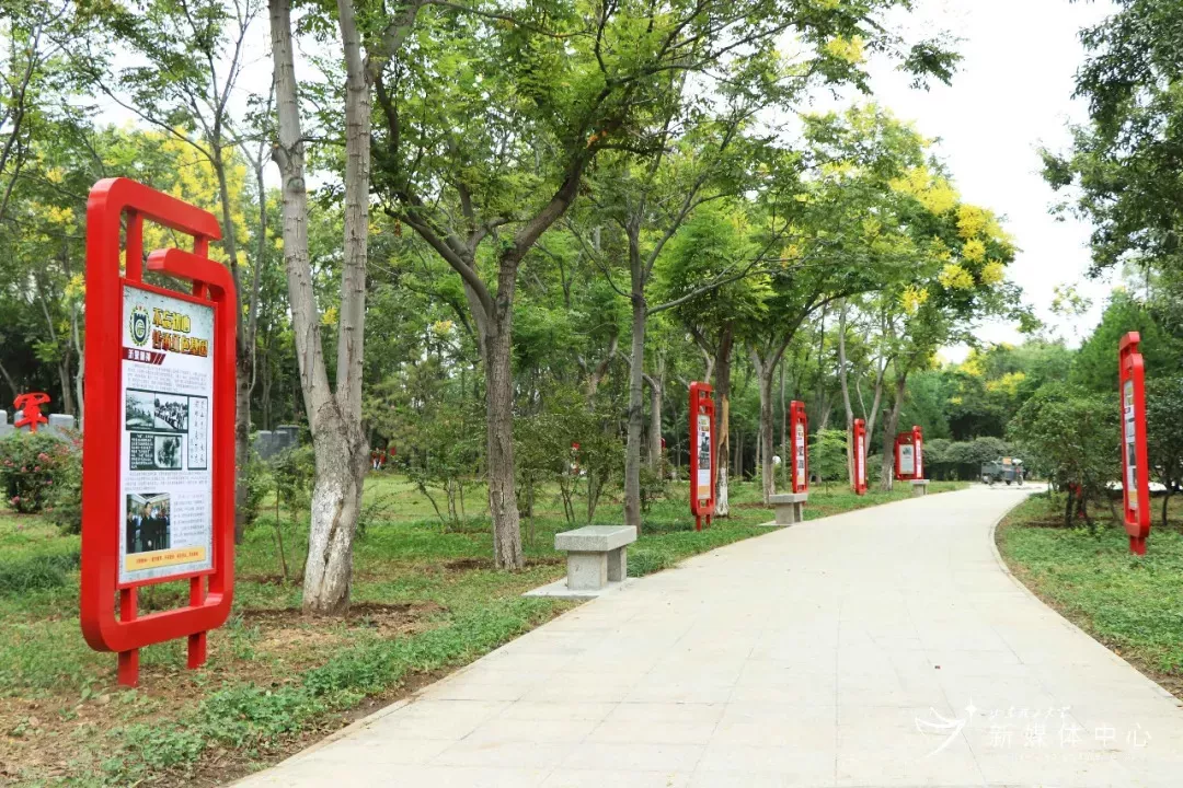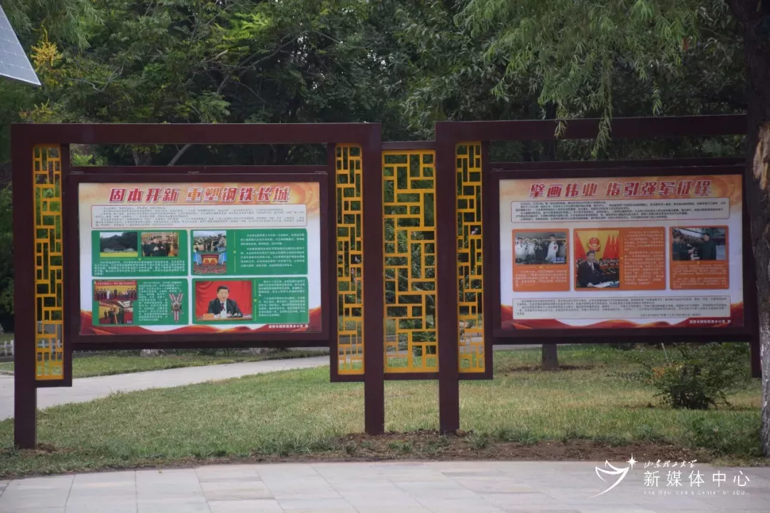 我校國防教育主題園由淄博軍分區(qū)政治工作處、張店區(qū)人武部和我校武裝部聯合建設,整個園區(qū)占地約60畝。整個園區(qū)位于山東理工大學逸夫圖書館東南側,主要依托花園內7條步道,共劃分7大專題,分別展示光榮傳統(tǒng)和紅色基因、淄博革命印記和紅色地標、淄博籍將軍和英模、征兵政策和優(yōu)秀退伍軍人代表、理工大學國防教育和征兵工作成效、國防和軍隊建設新成就新氣象、先進武器裝備和大國利劍等7方面內容。