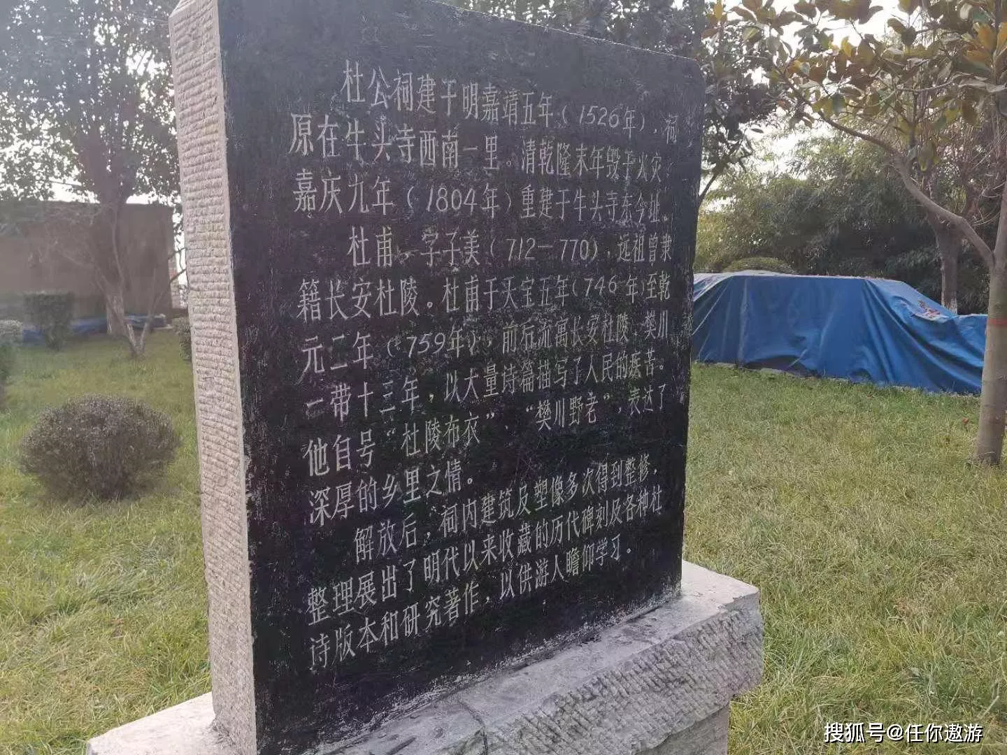 上面這張圖片就是,去杜甫紀(jì)念館外面的指示牌,想去紀(jì)念館的話,交通相對方便,可以坐西安地鐵2號線,到韋曲南站,從D下車,然后導(dǎo)航走過去。如果走路,路況不熟大概要30分鐘左右。好了,交通介紹到這,下來到紀(jì)念館,看看吧。