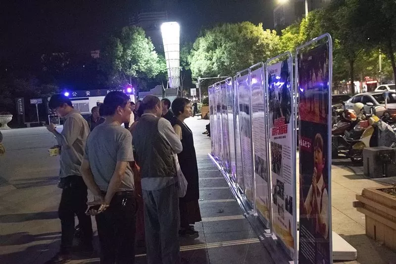 普法禁毒展板前陸陸續(xù)續(xù)有家長駐足,每個人都在認真的讀著相關(guān)的事例。
