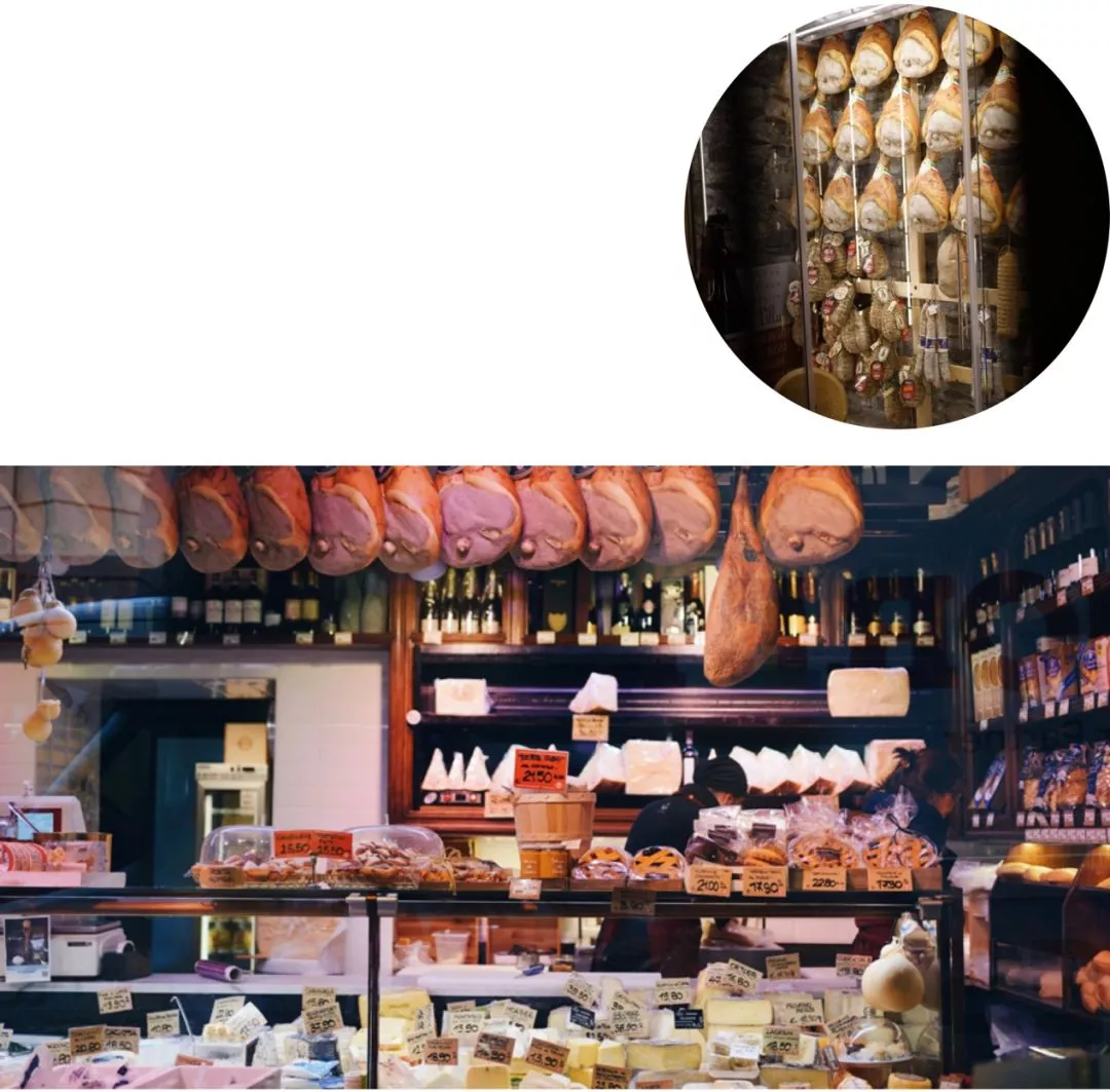 這里還要講一點(diǎn)干貨,在意大利,火腿的單詞是PROSCIUTTO,而帕爾馬火腿有其獨(dú)屬的名詞,叫PROSCIUTTO DI PARMA。