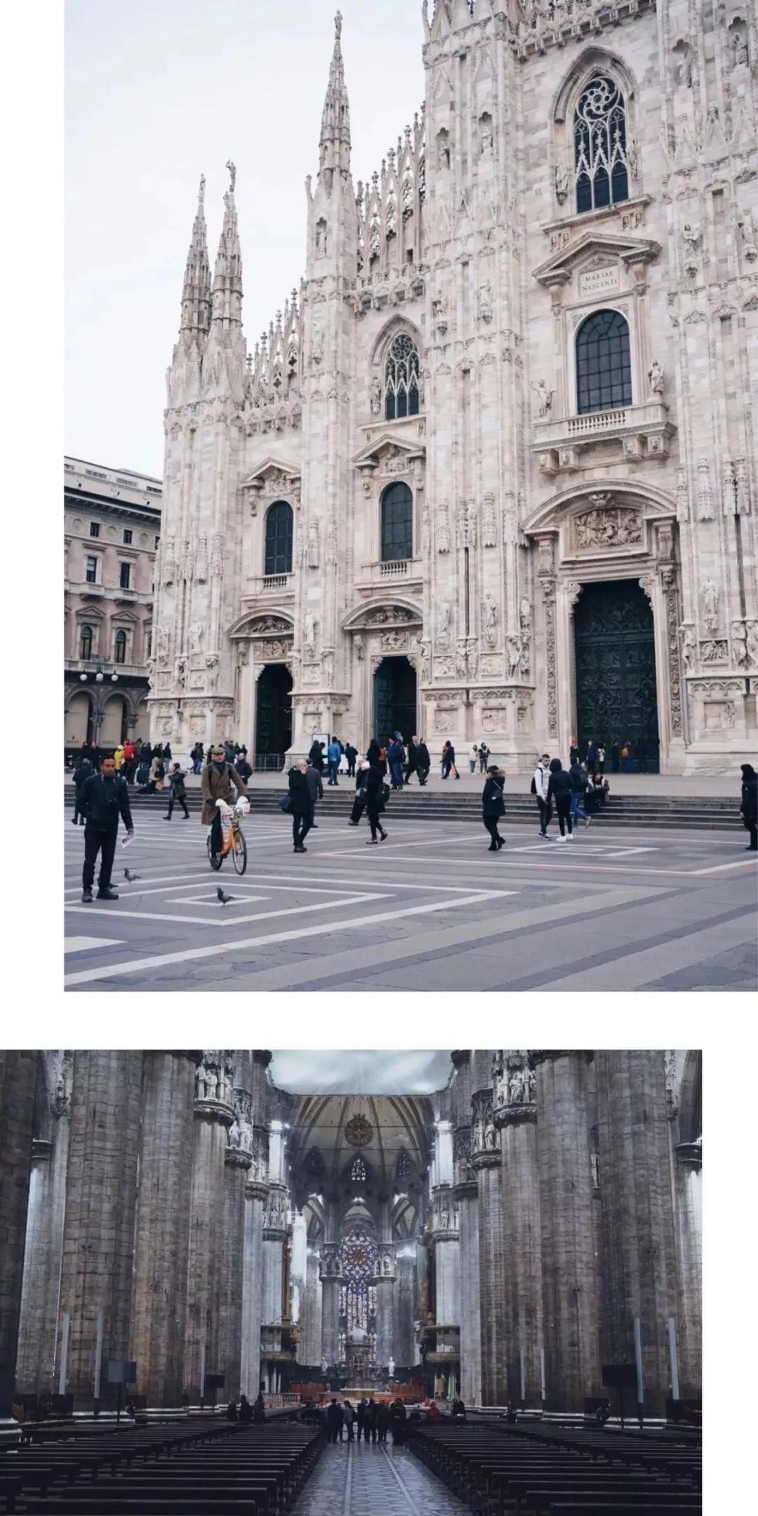 “大體的印象在剛出地鐵站的那一刻便定格了。壯觀到無法描述的哥特式Duomo 大教堂、突然飛起的大片鴿子,以及沐浴在陽光下的青年們?!?/p>