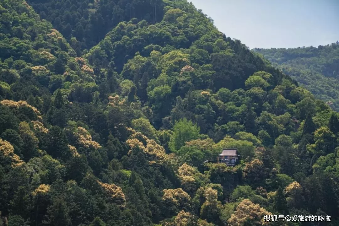 從渡月橋南岸逆流而行,大約20分鐘過后,正當(dāng)心情稍有不安之時,突然出現(xiàn)陡急石梯,拾級而上,10分鐘后抵達小小的本堂,有廣闊寂靜的絕景?!?/p>