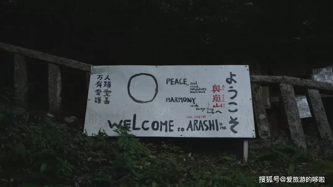 在網(wǎng)上讀到評論,也說住持有趣,來過的人無不印象深刻。這位住持的存在感從還沒見到他就出現(xiàn)了:沿著大堰川往西走沒幾步,沿途立著好幾個指路招牌,都是他的作品——親手寫下的“京都第一絕景”字樣,或是一些禪語。