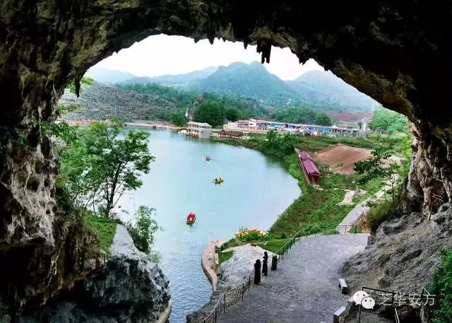 雙明洞,又稱(chēng)觀音洞,坐落在鎮(zhèn)寧縣城南郊一公里處的石柱灣山叢中,每當(dāng)皓月東升或西斜,月影射入,優(yōu)雅絕倫,造就“雙明漏月”,因此而得名。洞口分東、西兩門(mén),東門(mén)如窗高敞,西門(mén)寬闊開(kāi)朗,洞壁石乳空靈、腳下清泉淙淙,洞中小橋石梁跨水通幽。古代地理學(xué)家徐霞客曾對(duì)雙明洞的天然絕境題詩(shī)贊嘆,歷代名人多在此吟詩(shī)作賦,揮毫潑墨,至今仍清晰可見(jiàn)“一天門(mén)”、“洞天佳境”、“宇宙奇跡”等摩崖題書(shū),人文景觀和自然景觀融入一體。