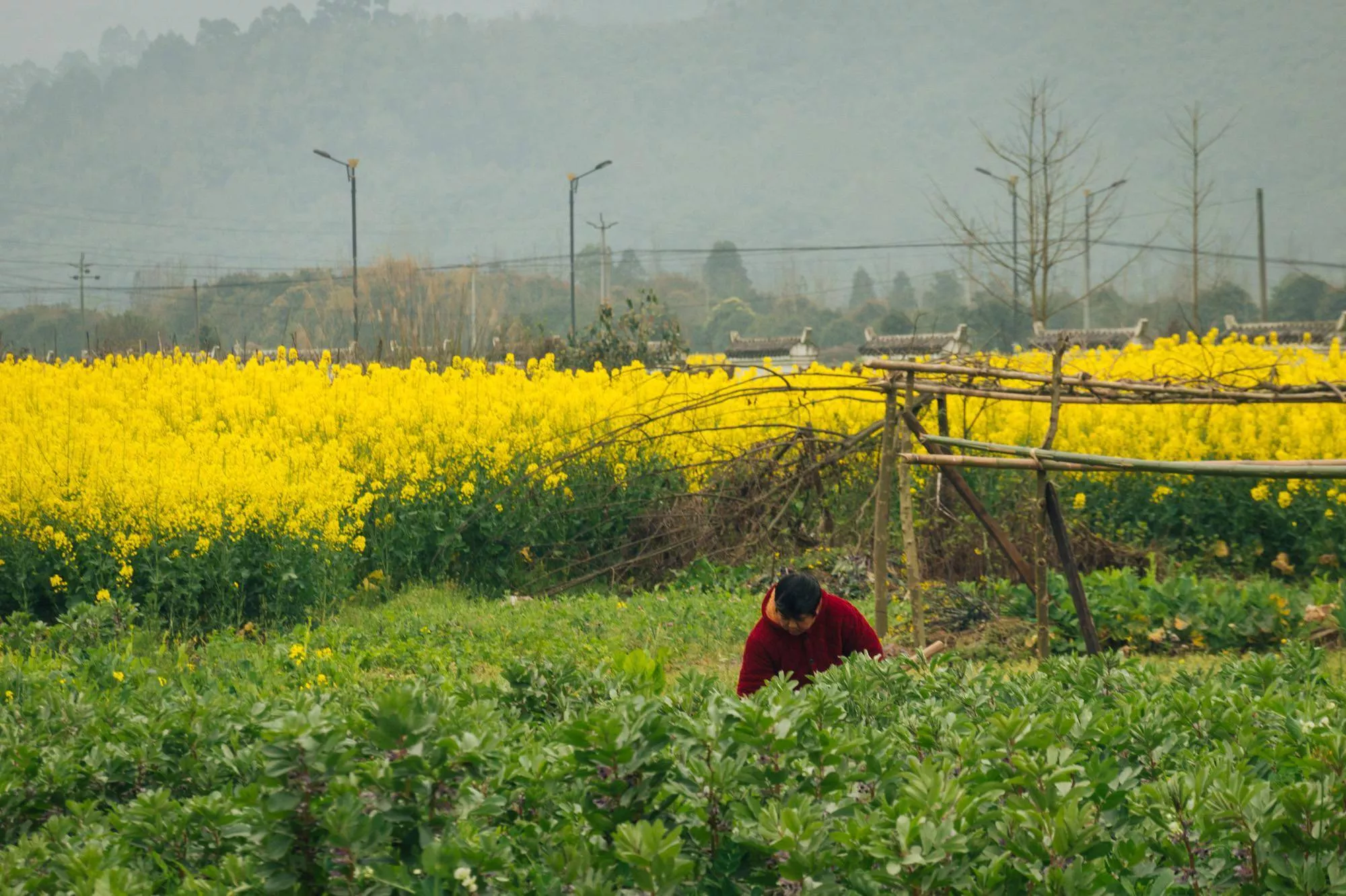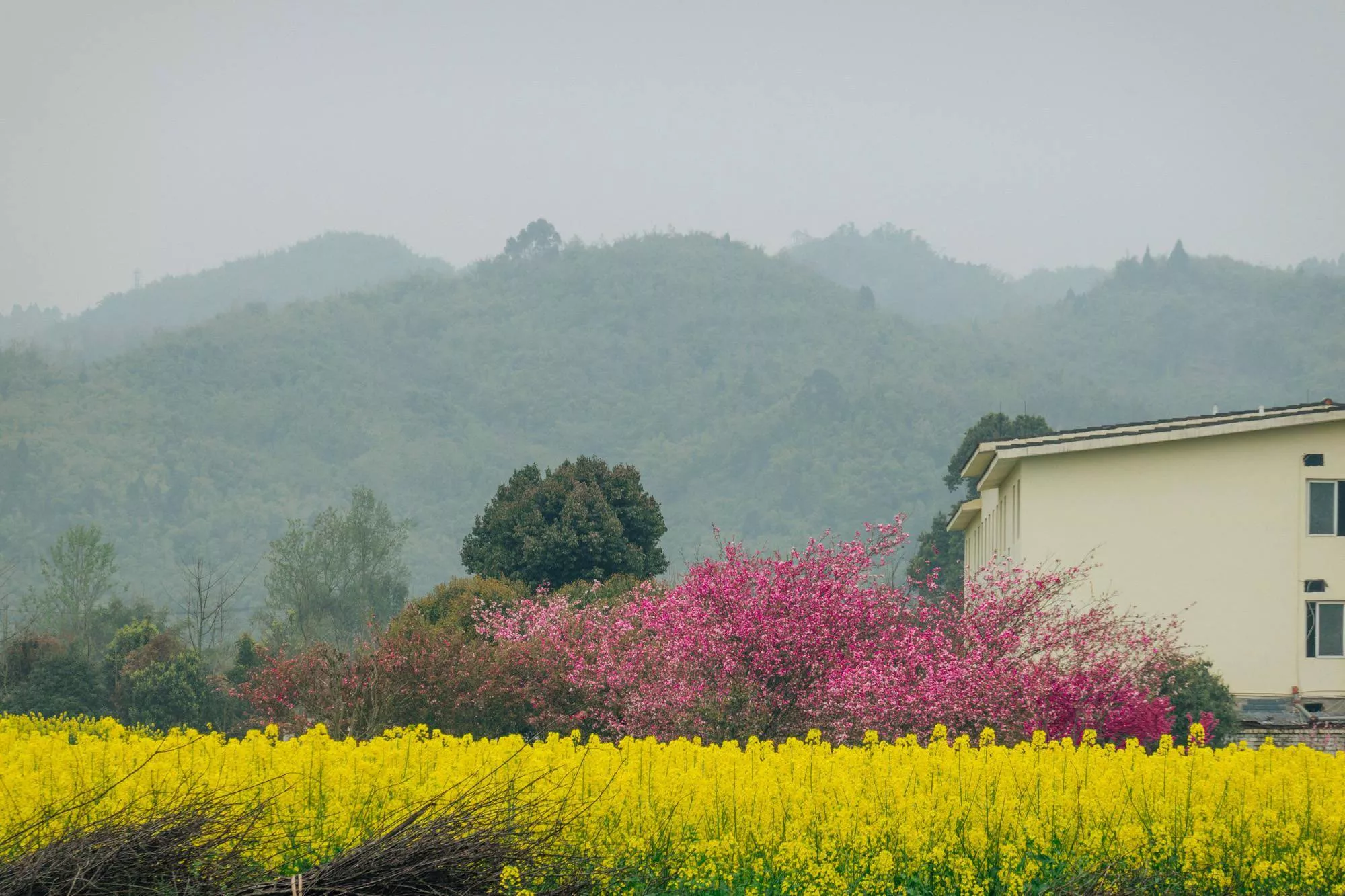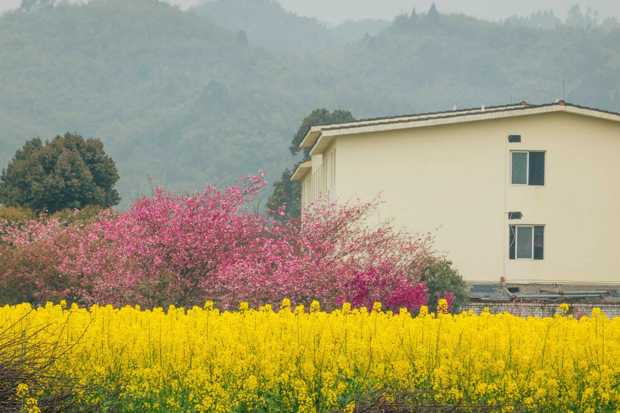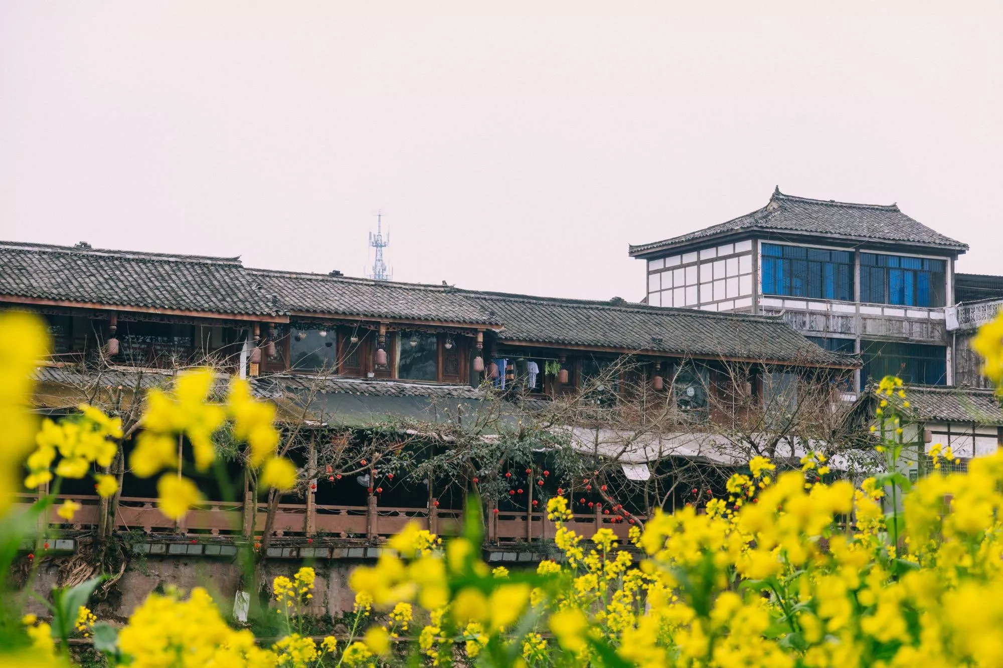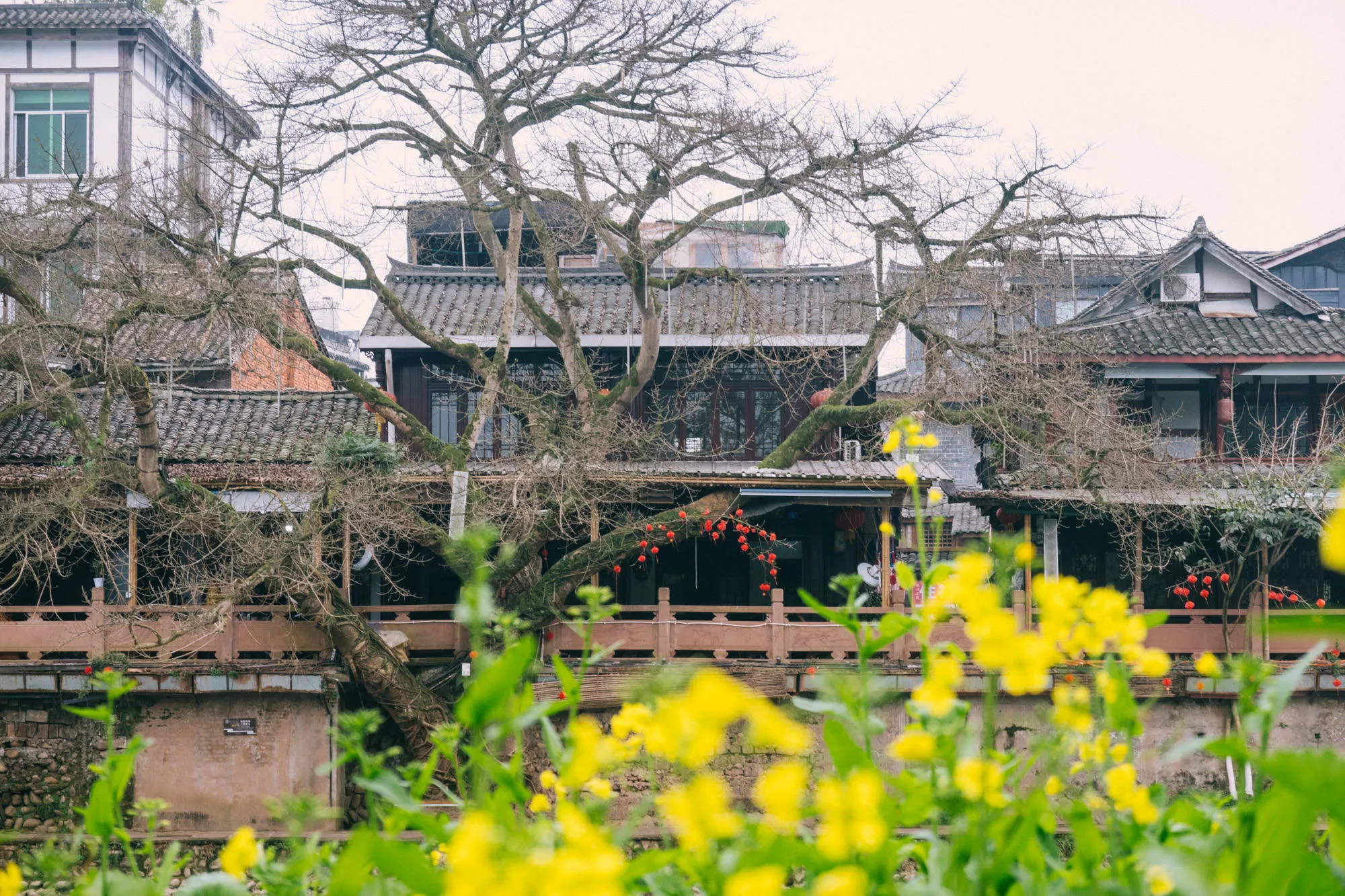 現(xiàn)在的平樂古鎮(zhèn)已經(jīng)有了春意,一望無(wú)際的油菜花開滿田野,一眼望去,收獲的是金燦燦的熱烈、田園春景的悠然。