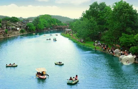 平樂古鎮(zhèn):位于成都西南93公里、邛崍市西南18公里處,是中國(guó)歷史文化名鎮(zhèn)。 平樂古鎮(zhèn)素有“一平二固三夾關(guān)”的美譽(yù),歷史悠久,人文鼎蔚,青山層疊,竹樹繁茂。 平樂古鎮(zhèn)發(fā)源于省級(jí)風(fēng)景旅游區(qū)天臺(tái)山玉宵峰的白沫江自西向北流經(jīng)古鎮(zhèn),碧水縈繞,鷗鳥出沒,四季風(fēng)景如畫,白沫江兩岸古木參天,眾多樹齡上千年的榕樹,遠(yuǎn)遠(yuǎn)望去如云蓋地,平樂古鎮(zhèn)老榕樹、白沫江、沿江而建的吊腳、青石鋪成的街道,一望無(wú)涯的竹海,千百年來(lái)共同培育了古鎮(zhèn)人田園詩(shī)般的山水情懷,涵養(yǎng)著平樂古鎮(zhèn)天然清新的鄉(xiāng)土文化。 平樂古鎮(zhèn)早在公元前150年西漢時(shí)期就已形成了集鎮(zhèn),迄今已有二干多年的歷史。公元970年為火井縣治所在地。聞名遐邇的“九古”風(fēng)華,承載了平樂道不盡,說不完的文化風(fēng)韻——古街、古寺、古橋、古樹、古堰、古坊、古道、古風(fēng)、古歌……平樂古鎮(zhèn)的“鎮(zhèn)外之景”更令人嘆為觀止:蘆溝自然風(fēng)景區(qū)金華山風(fēng)景區(qū)、金雞溝風(fēng)景區(qū)、花楸山風(fēng)景區(qū)和秦漢古驛道風(fēng)景區(qū),無(wú)一處不是人類文明之經(jīng)典。
