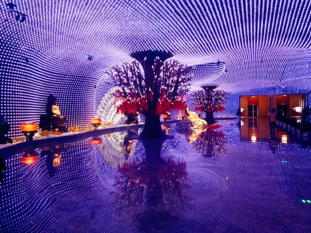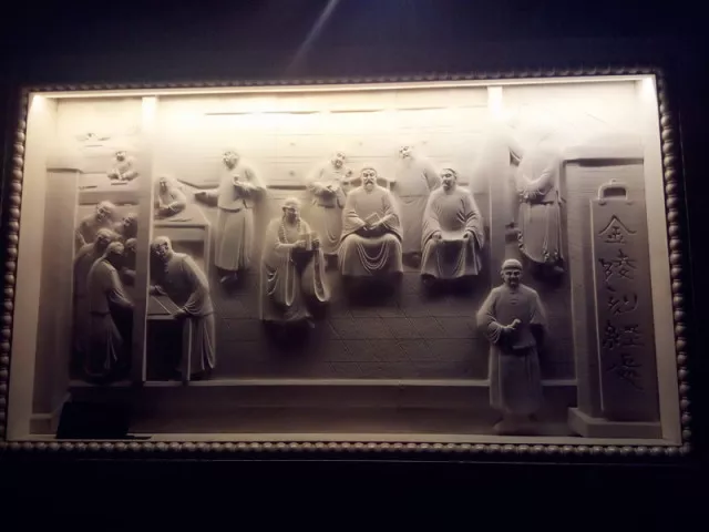 蓮池海會(huì)與舍利佛光,展示了重要的佛教文化。蓮池海會(huì),匯集了南京歷代開宗立派的高僧大德。舍利佛光,暗合感應(yīng)舍利七次放光的記載,展廳內(nèi)變幻的燈光映襯在對(duì)面的玻璃上,美輪美奐,莊嚴(yán)殊勝。