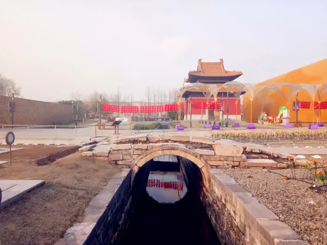站在大門口,左邊是著名書法家孫曉云題寫的“大報(bào)恩圣地”石碑,前方的拱形橋是600多年前建造的明代香水河橋,兩座碑亭左右對(duì)稱而立。