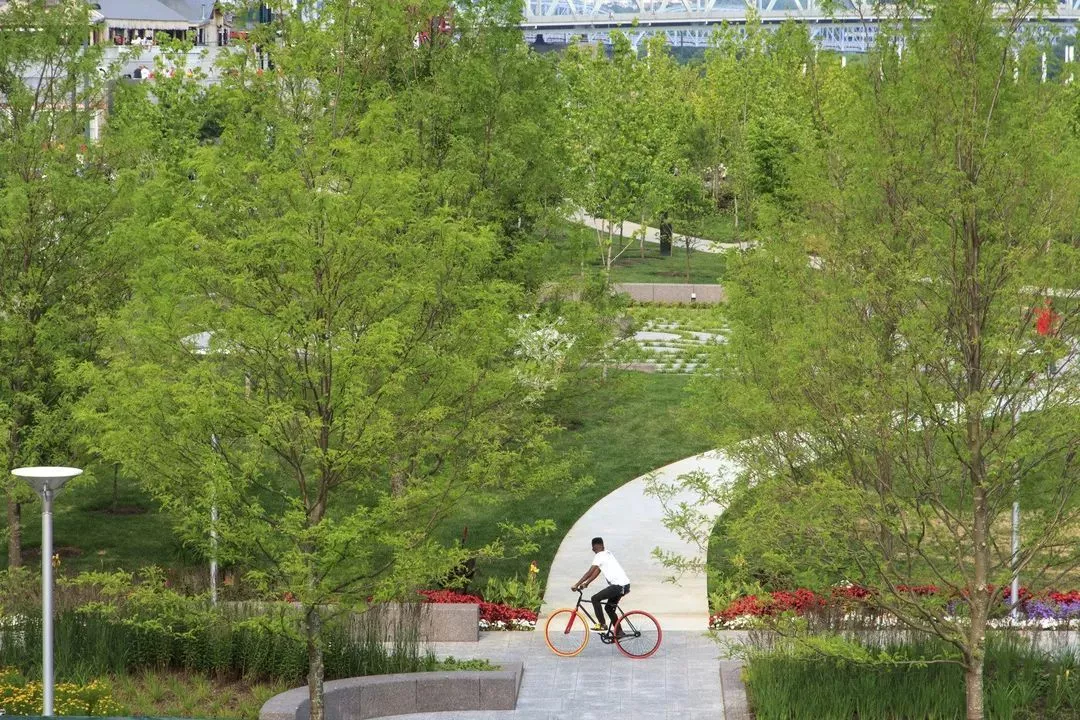 沿河公園形成連續(xù)的開放空間鏈,連接州立休閑道與自行車道系統(tǒng),并將辛辛那提市中心與大俄亥俄河連接起來。Sasaki的公園設(shè)計(jì)為羅布林大橋——歷史性重要建筑地標(biāo)——?jiǎng)?chuàng)造了合適的背景,同時(shí)提供大型聚會(huì)、靜態(tài)休閑以及項(xiàng)目活動(dòng)的空間。