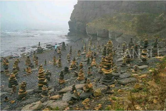 維亞特里納角(Vyatlina)是俄羅斯遠東地區(qū)最風(fēng)景如畫的地方之一,最近幾年來,這里多巖石的海灘上,聳立起來許許多多人為建造的石塔。這些石塔大小不一,造型各異,但數(shù)量卻有數(shù)百座之多,并且每天都有新的石塔出現(xiàn)。這些遍布維亞特里納角海灘的巖石建筑密密麻麻,猶如迷宮一般,人們也因此稱之為俄羅斯巨石陣。