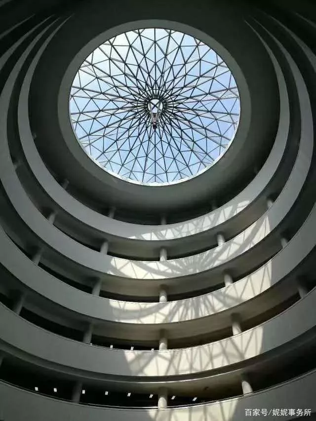 圖書館中庭陽光從圓形透光屋頂灑下來,圖書館既明亮又安靜,絕對是讀書的好地方!