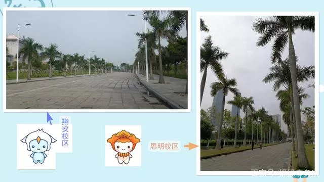 廈門大學翔安校區(qū)石板路VS思明校區(qū)石板路+棕櫚樹思明校區(qū)校友們都很熟悉了,就沒有寫體驗。翔安校區(qū)是新校區(qū),可能大多數(shù)校友還沒有進去過。翔安校區(qū)繼承了思明校區(qū)的風格,處處有思明校區(qū)的影子,比如:陳嘉庚塑像丶飛檐屋頂(燕尾脊屋頂)丶“穿西裝戴斗笠”的嘉庚建筑、石板路丶鳳凰花丶芙蓉湖等。請看上面的翔安和思明校區(qū)的石板路配棕櫚樹,是不是傻傻的分不清哪個是翔安校區(qū),哪個是思明校區(qū)哇?