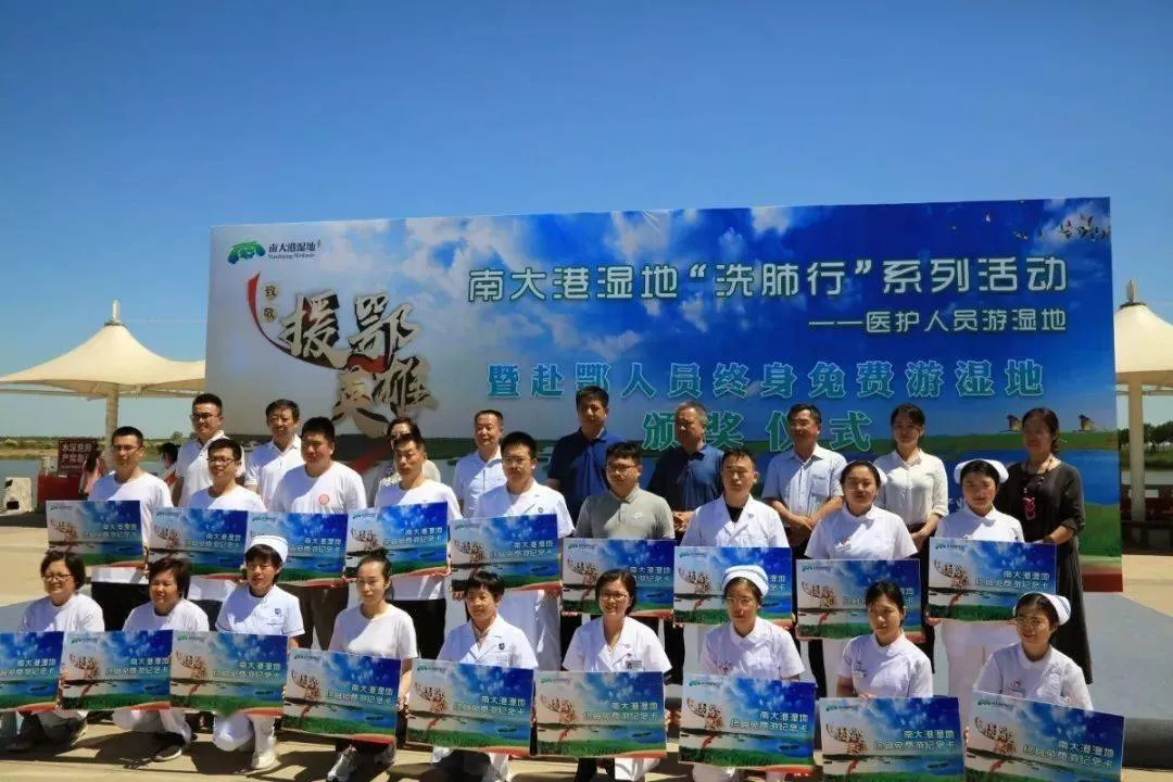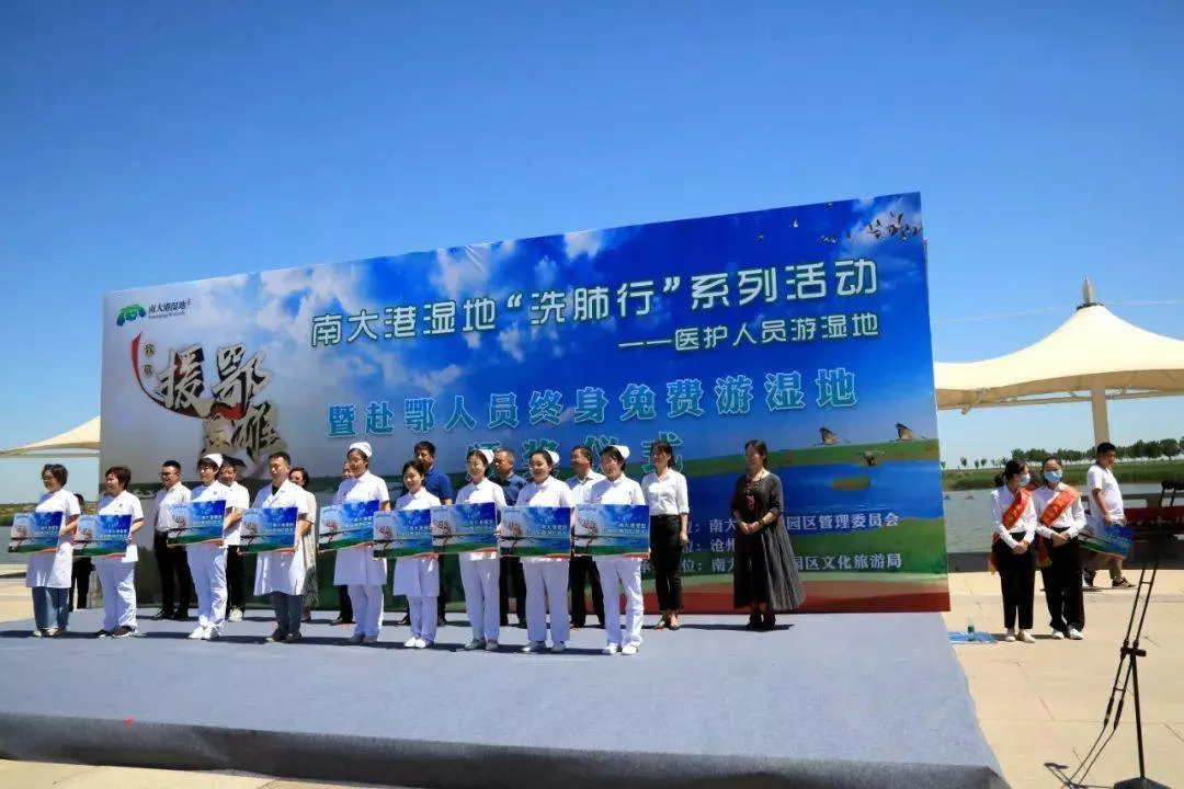 此次活動由滄州日報(bào)社、滄州市文化廣電和旅游局、南大港產(chǎn)業(yè)園區(qū)管理委員會聯(lián)合舉辦,南大港產(chǎn)業(yè)園區(qū)文化旅游局承辦。馳援武漢醫(yī)療隊(duì)成員可終身免費(fèi)游濕地,其他醫(yī)療人員今年可免費(fèi)游濕地,同行人員也可半價優(yōu)惠。據(jù)悉,這是南大港濕地本年度“洗肺行”系列活動之一,以此致敬為保護(hù)人民生命健康而努力的醫(yī)護(hù)英雄們。