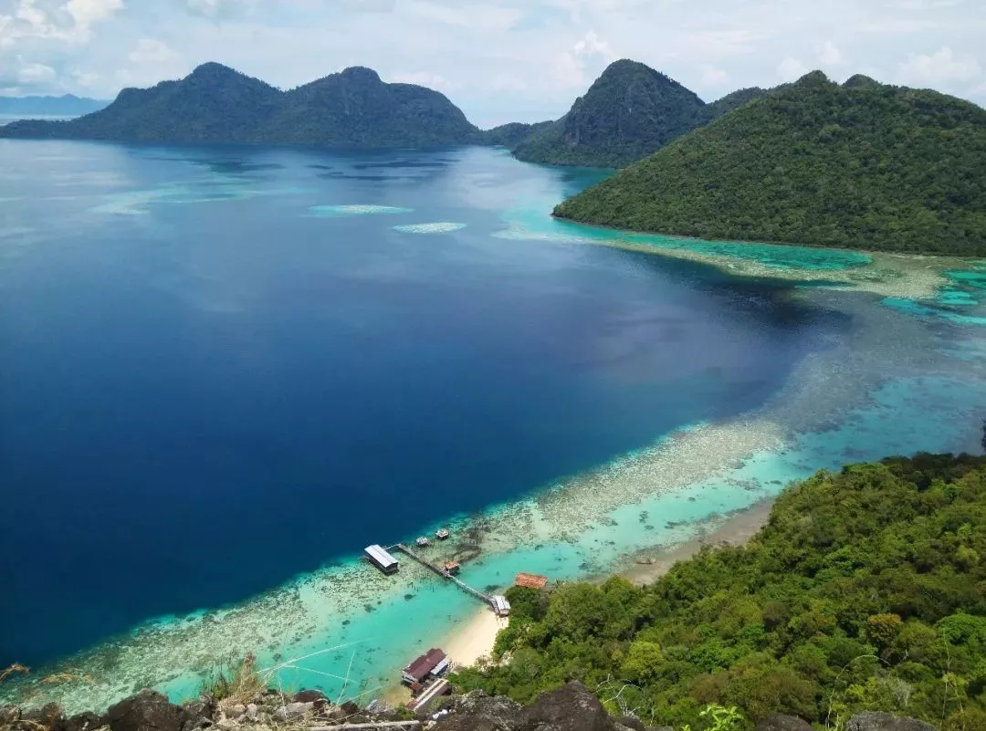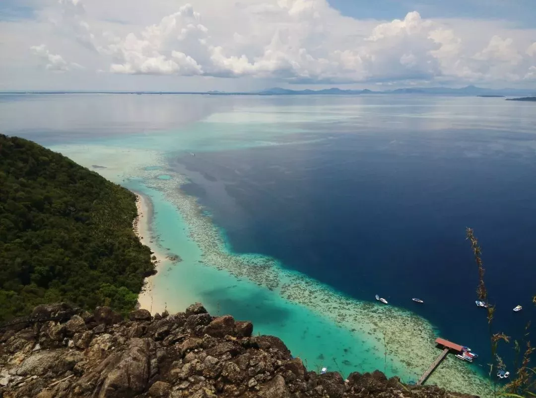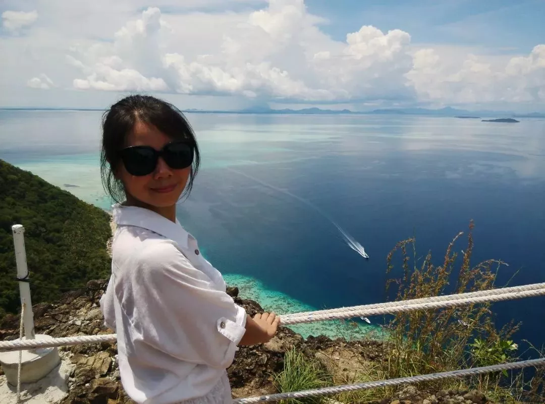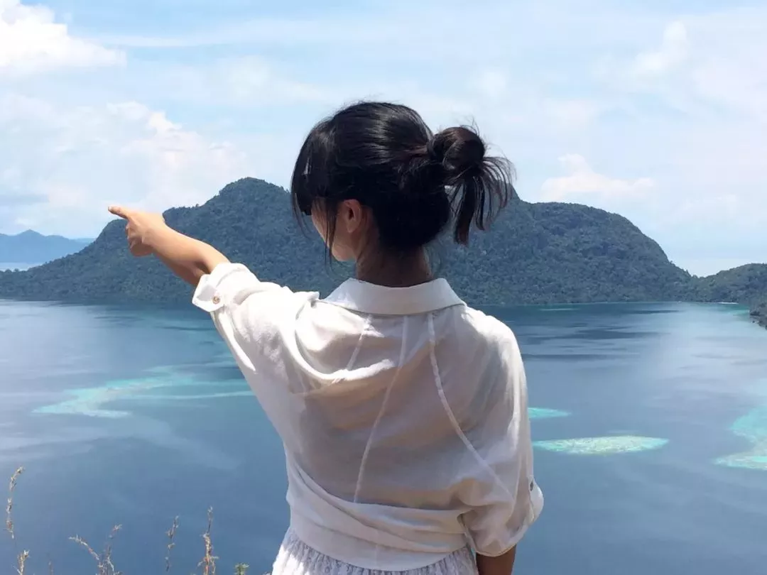 珍珠島也稱睡美人島,是一座沉睡的火山,爬到山頂可以俯瞰整個(gè)敦沙卡蘭海洋公園,遠(yuǎn)近各種不同的藍(lán)和綠,是整個(gè)仙本那最漂亮的地方(海拔600米,45分鐘可登頂)
