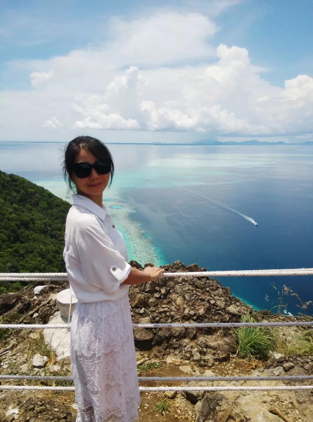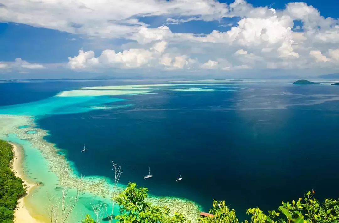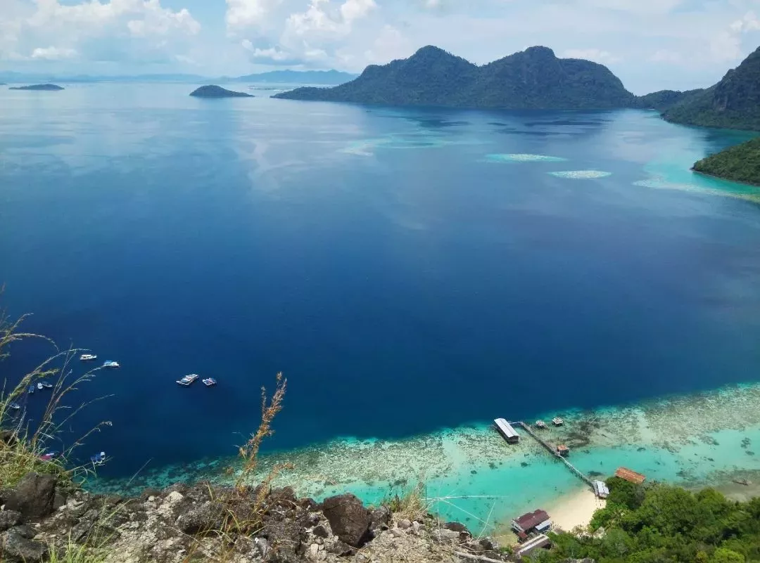 珍珠島也稱睡美人島,是一座沉睡的火山,爬到山頂可以俯瞰整個(gè)敦沙卡蘭海洋公園,遠(yuǎn)近各種不同的藍(lán)和綠,是整個(gè)仙本那最漂亮的地方(海拔600米,45分鐘可登頂)