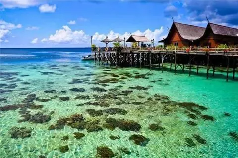 在巴瑤語和馬來語中仙本那Semporna字面意思為‘完美的’。城鎮(zhèn)被海水包圍著,,仙本那和它的附屬海島就像是一個(gè)現(xiàn)實(shí)世界中的夢境之島。純凈的白色沙灘、椰子和平靜美麗的如綠松石般的Sulawesi 海的海水輕輕拂過五顏六色的礁石。
