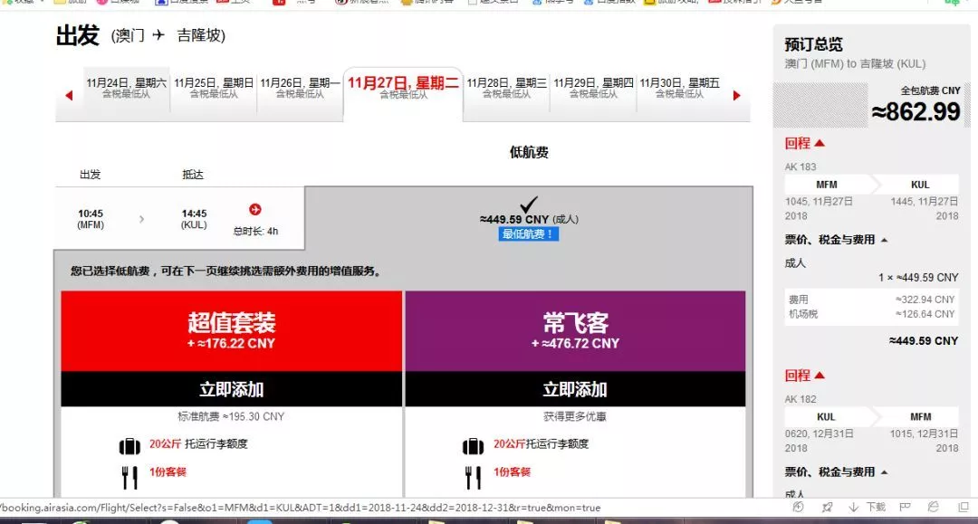 下圖機(jī)票為我今天查詢亞航官網(wǎng)上澳門往返吉隆坡價(jià)格,八百多,如果趕上大促,五六百都有可能 。