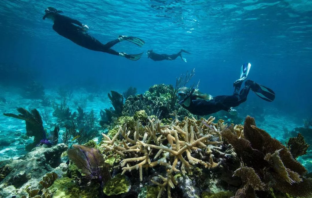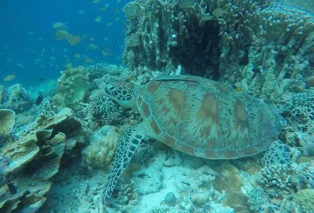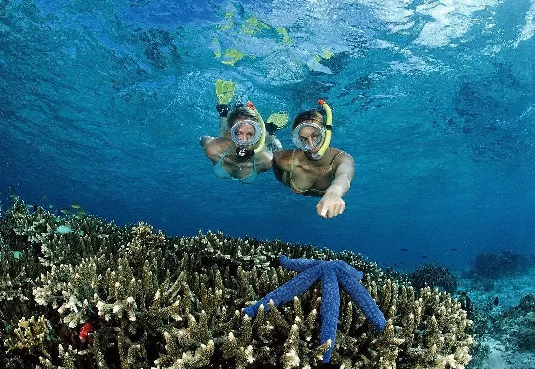 早餐后早8:00酒店大廳集合前往碼頭,8:30乘快艇準(zhǔn)備出海,抵達(dá)馬達(dá)京附近海域,進(jìn)行第一次浮潛。這里水下珊瑚保護(hù)完好,海水能見度很高,非常適合潛水。各種彩色的魚兒們?cè)谏汉鏖g穿梭漫游,更能看見海龜?shù)缺姸?a href='/haiyang98/' target=_blank>海洋生物。