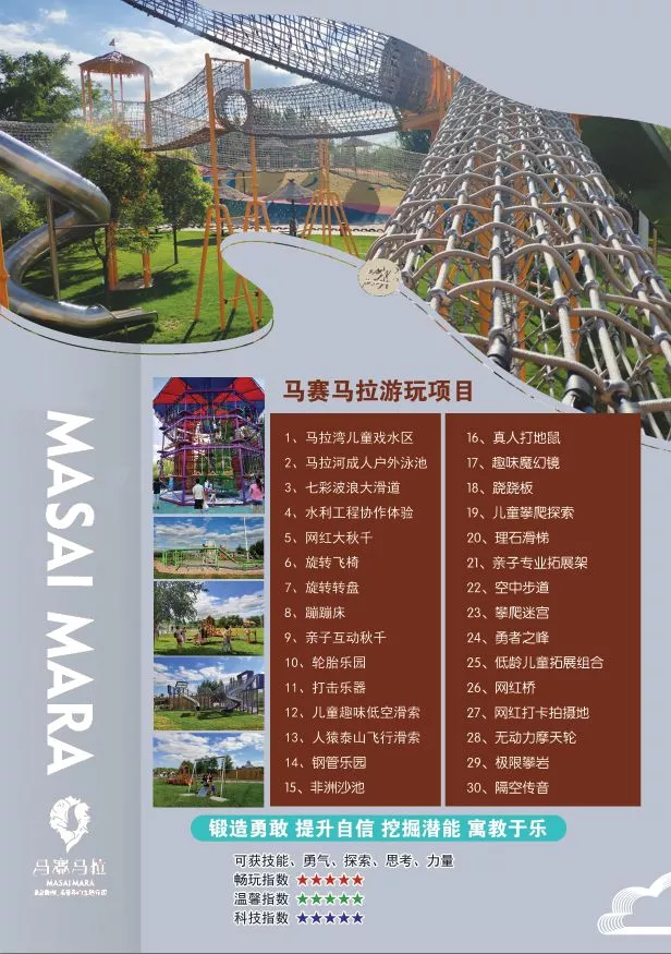 馬賽馬拉主題樂園占地4萬平,游玩項目30余項,全園均為無動力游玩設(shè)施(什么是無動力?答:就是不需要任何電力驅(qū)動的設(shè)備)