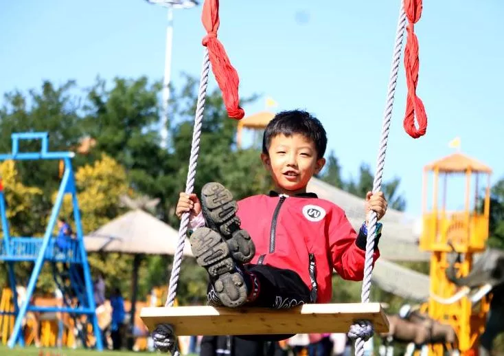 打秋千大人孩子都是不可抗拒的,沒有年齡的界限,只要玩上,煩惱通通丟掉
