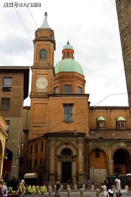 博洛尼亞的柱廊也是一個看點,如果把所有柱廊的長度加起來,有三十多公里。后面的鐘樓和穹頂是圣雅各教堂的。