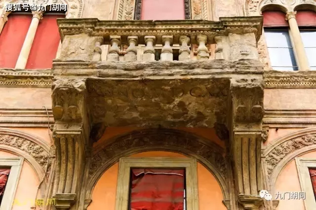 陽臺底下的拉丁文,顯示這座陽臺的年代為1620年。