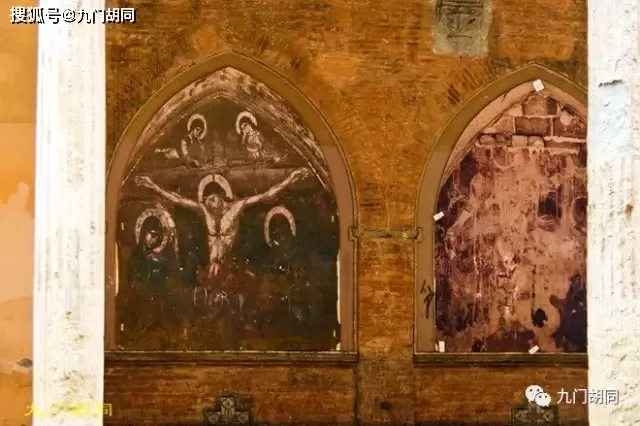 柱廊墻上殘留的壁畫,怎么也有上百年吧,也許更長。