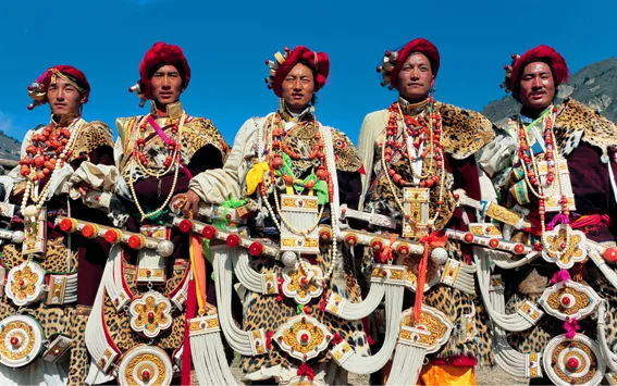 開幕式上壓軸出場的是康巴漢子,來自雅江縣的西俄洛鄉(xiāng)的康巴漢子村,在這個村里據(jù)說身高1.85以上的漢子隨處可見,鐵塔一樣魁梧,身著盛裝的漢子時時透出一股野性和英氣。“西俄洛”的藏語意思是“反擊、吞并”,據(jù)說最初起源是在青海蒙古部落,驍勇彪悍是血液里的基因,2005年4月,經(jīng)中國商標局批準將該地注冊商標為“康巴漢子村”。