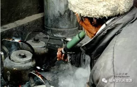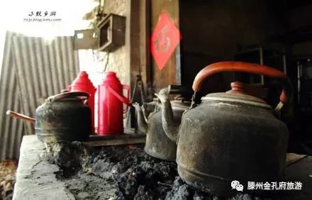 炭火爐上燒開的回龍泉水,店主每天早上4點多就要去村外拉泉水。