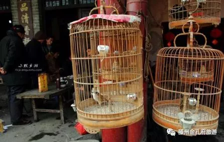 茶館外面都有專供來喝茶的老人掛鳥籠掛的地方。