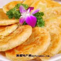 糖餅,是右玉人相傳己久的待客食品。其制作方法是:將小麥面粉、葫油、蘇打適量,用七八成熱的水和好。再用葫油和白面粉、糖拆成酥。把和好的面制成劑,搟成薄餅,包入酥,再搟成大約1厘米多厚的餅,上慢火烤炙。食之酥脆甜香。