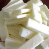 奶豆腐,蒙古語稱“胡乳達(dá)”,是蒙古族牧民家中常見的奶食品。味道有的微酸,有的微甜,乳香濃郁,牧民很愛吃,常泡在奶茶中食用,或出遠(yuǎn)門當(dāng)干糧,既解渴又充饑。還可以做成拔絲奶豆腐,其軟韌牽絲為斷,是宴席上的一道風(fēng)味名菜。奶豆腐,分為生奶豆腐和熟奶豆腐兩種。 熟奶豆腐的做法是,把熬制奶皮剩下的奶漿,或提取酥油后余下的奶渣,放置幾天,待其發(fā)酵。當(dāng)奶漿或奶渣凝結(jié)成塊時(shí),用紗布把多余的水份過濾掉。然后將固體部分,在鍋里文火煮,邊煮邊攪,直到粘著程度時(shí),再裝進(jìn)紗布里,把黃水?dāng)D出。這時(shí)就可以裝饃壓制成形,或置于木盤中,用刀劃成各種形狀;生奶豆腐的做法是,把鮮奶發(fā)酵,使其變酸后,倒入鍋里煮熬,奶漿就變成老豆腐形狀。然后在紗布中,擠壓去水份,裝模成形,奶豆腐色澤乳白為最佳。奶豆腐可現(xiàn)吃,柔軟細(xì)膩,十分可口,也可晾干久存食用。
