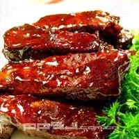 無(wú)錫“肉骨頭”的歷史有100多年。無(wú)錫肉骨頭其實(shí)根本不是“骨頭”,而是挑選近肋骨處的精肉連同肋骨一起燒成。作料有茴香、醬油、陳酒,燒煮時(shí)必須用面粉將鍋沿封住,用文火燒,燒至噴香酥爛,出鍋前用冰糖收膏。其肉汁甜香成糊狀,俗稱“老汁”。出售肉骨頭時(shí),將老汁澆在熟肉上,使汁與肉拌和。無(wú)錫肉骨頭色、香、味俱佳,看來(lái)醬紅色,聞時(shí)濃香撲鼻,吃進(jìn)口油而不膩、爛而不糊、甜咸適中
