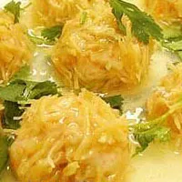 6.鍋置旺火上,倒入上湯200毫升,燒開后加少許味精、濕淀粉勾芡成薄芡,淋在繡球上即成。