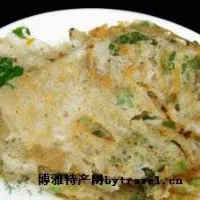 煎粿,原是農(nóng)民在早稻登場(chǎng)后,舂米時(shí)篩出的碎米磨成米漿,配上南瓜、韭菜、芹菜、綠豆芽等,用油煎干而成。莆田二十四景之一的石室?guī)r煎粿最為出名,有“沒吃煎粿等于沒上石室?guī)r”之說。