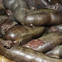 血灌粑除了要有血和腸子以外,還要加上糯米。具體的做法是,先將豬大腸洗干凈備用,再把糯米洗干凈,然后在糯米里加入新鮮的豬血和鹽拌勻,講究一些的還可以加入肉沫、胡椒粉、辣椒粉等,然后把混合了豬血的糯米像灌香腸一樣裝進(jìn)豬大腸里。注意裝的時(shí)候不能裝的太滿,要考慮到糯米煮熟會(huì)膨脹,一般只要裝一半即可,再用棉線把豬大腸的兩端纏緊,用針在腸子上扎一些小孔,以便透氣。最后,把一節(jié)節(jié)裝好了血糯米的豬大腸放在鍋?zhàn)永镎羰炀涂梢允秤昧恕?