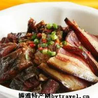 【特點】此菜臘香濃重,咸甜適口,色澤紅亮,柔韌不膩,稍帶厚汁,且味道互補,各盡其妙。