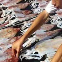 南澳島的東南海域,是我國著名的魷魚漁場。這里出產(chǎn)的魷魚以體大肉厚質嫩著稱,更加南澳魷鄉(xiāng)漁民掇捕、加工、曬制工藝獨特,貯藏保味技術別具一格,故魷魚“色、形、味俱佳而深受世人歡迎。每年暑海5-9月,是南澳掇魷的黃金季節(jié),以夜海釣捕和燈光誘捕相結合。清晨,滿載而歸的漁民趁著魷魚鮮活,用特制的魷刀剖開魷體,切開頭部,斜剜魷眼,除去內臟,取掉墨囊,洗凈后將魷魚攤曬于網(wǎng)簾、竹簾或巖石上,此后每隔一兩個小時翻面輪曬,松須、撕鰭、張體,直至黃昏,即為宅魷的半成品;魷魚曬成干脯后,經(jīng)交叉疊壓、密封貯藏,便是膾炙人口的宅魷了。