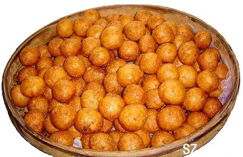炸油果 廣東 ? 河源 ? 龍川 炸油果 炸油果又名“炸煎堆”。油果制作比較簡便,先將糯米碾成粉,每斗糯米配2.5司馬斤川糖。將糖煮成糖液與糯米粉搓均勻,搓越久越松軟,搓成粉團(tuán)后再捏成一個(gè)個(gè)狀似乒乓球大小的粉團(tuán),表面粘上白芝麻再放進(jìn)油鍋中燒炸,將粉團(tuán)炸成深紅色即可起鍋,過年時(shí)將油果蒸軟作為下酒料,這是在新年期間每餐不可缺少的食肴。 贊 (0) 39 151 生成海報(bào) 芝麻花生酥 下一篇 0001-01-01 打炒米 上一篇 0001-01-01 相關(guān)推薦