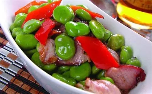 1、將蠶豆除去豆眉,用冷水洗凈,在沸水中略焯。熟火腿切成0.3厘米厚、1厘米長(zhǎng)方的丁。2、鍋置中火上燒熱,下色拉油至150度時(shí),將蠶豆倒入,約煸10秒鐘,把火腿丁下鍋,隨即放入奶湯,加白糖和精鹽,燒一分鐘,加入味精,用濕淀粉調(diào)稀勾芡,顛動(dòng)炒鍋,淋上雞油,盛入盤(pán)內(nèi)即成。