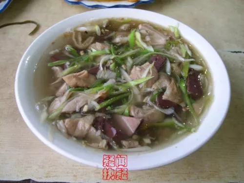 葫蘆雜碎又叫揚風(fēng)攪雪或葫蘆菜和,最早風(fēng)于民間本家會的成員聚餐,工藝明快簡捷,營養(yǎng)豐富,是素暈混吃的一味民間小吃。做法上是取洗凈切塊的豬羊肝肺腎肚腸,入水汆制,去糞腥油法,與用血漿熱凝而成的血塊一起下鍋,文炎熨煮,待八九分熟時,加入以葫蘆(現(xiàn)稱甜美南瓜)為主的自產(chǎn)無污染綠色蔬菜,旺火燒沸,待青菜、南瓜熟透,部分組織混成湯汁后,加入蔥韭、青椒、生姜、調(diào)料、青鹽等提味壓腥,既成赤橙黃綠青藍(lán)紫、香麻辣甜沁心脾的燴大菜。