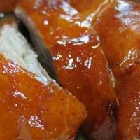 五桂山是中山客籍人士聚居地,咸雞乃傳統(tǒng)的客家菜。早在2001年,亞古就推出了中山首創(chuàng)的客家風(fēng)味咸鵝?!皞鹘y(tǒng)的客家咸雞,是將整雞放入凍水中煮,加鹽一平碗,熟后取出,用食油周身抹勻,然后切塊、裝盤。咸鵝的做法比較復(fù)雜,材料非沙田鵝莫屬,每只體重2.5至3公斤,太重則肉質(zhì)粗糙,太輕就沒有‘嚼頭’;鹵水加入了秘制藥材,還要控制好火候,才能炮制出肉質(zhì)鮮甜、回味無窮的客家咸鵝。”