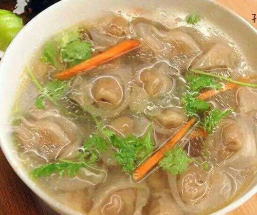 蒼南礬山肉燕精選上好的本地豬后腿精肉,趁肉有余溫馬上切塊,將肉捶打成漿狀,配上本地手工番薯粉,經(jīng)過一棍一棍的反復壓打而成燕皮,再取肉之精華做餡包入其中,用手捏成燕子形狀,一鍋湯水,旺火燒開,下肉燕,肉燕遇水遇熱,燕皮一舒一張,“形似飛燕,食似燕窩”。蒼南礬山肉燕由當?shù)貜N師朱為唐在上世紀40年代初創(chuàng)立,選料精良,配方獨特,手藝精湛?,F(xiàn)傳承人朱師勤的礬山肉燕制作技藝已被確認為溫州市非物質文化遺產(chǎn)。榮獲“浙江十大農(nóng)家特色小吃”榮譽稱號。