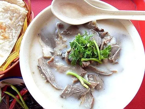 鹽窩全羊湯是東營(yíng)利津縣鹽窩鎮(zhèn)的一種特色美食小吃,其羊湯制作工藝非常講究,主要選用當(dāng)?shù)貎?yōu)質(zhì)山羊?yàn)樵希善肪哂袦嗜榘咨?,肉鮮質(zhì)美,入口滑潤(rùn)等特點(diǎn)。鹽窩全羊湯是精選羊的內(nèi)臟烹飪而成的“羊雜湯”,是營(yíng)養(yǎng)價(jià)值的集大成者,特別是全羊湯,那更是當(dāng)?shù)孛朗持械囊唤^,只要是來(lái)過(guò)東營(yíng)品嘗過(guò)它的人,無(wú)不對(duì)它贊不絕口。鹽窩全羊湯尤其以齊魯知香全羊湯比較有名。
